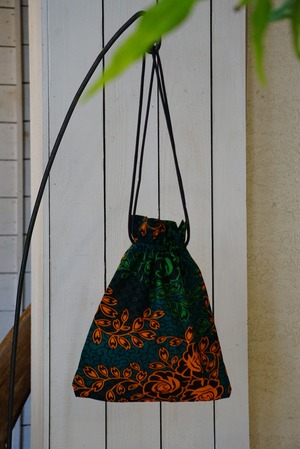 東アフリカの国、タンザニアにてコットン100%のプリント生地"キテンゲ"で作られた巾着です。